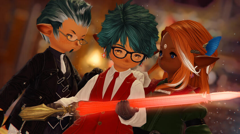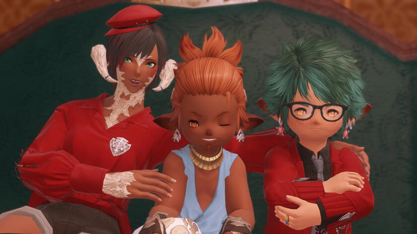 Unable to find his parents, Yu set off to look for them in the wreckage of Ul’dah. The sight of the destruction and gravity of his situation left him in shock, so much so that he didn’t recognize Delika calling out to him until the other man grabbed him by the arm. Relieved to see one another, they embraced, and Del took Yunji in for a time to live with him and a female Raen, Tenko Musa, who was the same age as Yu. A motherly type, she took to Yu quickly, soothing him as he grieved.